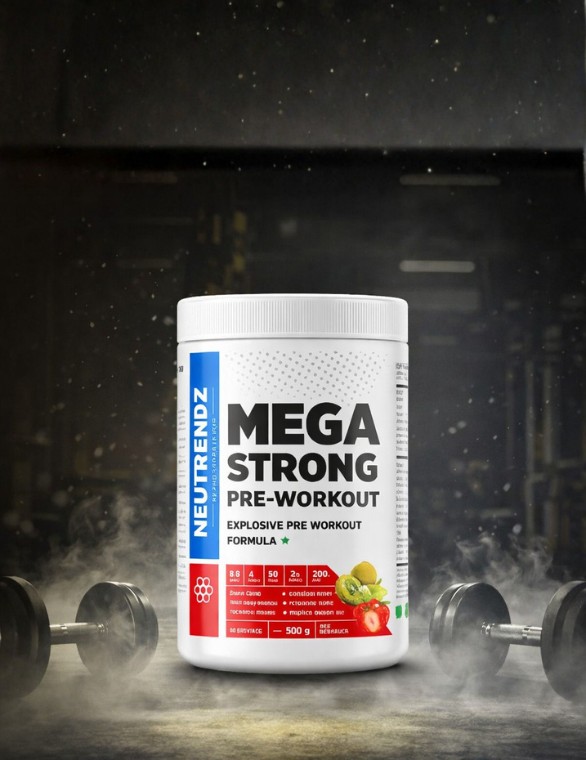 NEUTRENDZ MEGA STRONG PRE WORKOUT is specially formulated to give you an intense energy boost, enhanced focus, and increased endurance during your workouts. Each 20g scoop contains a powerful blend of ingredients, including: